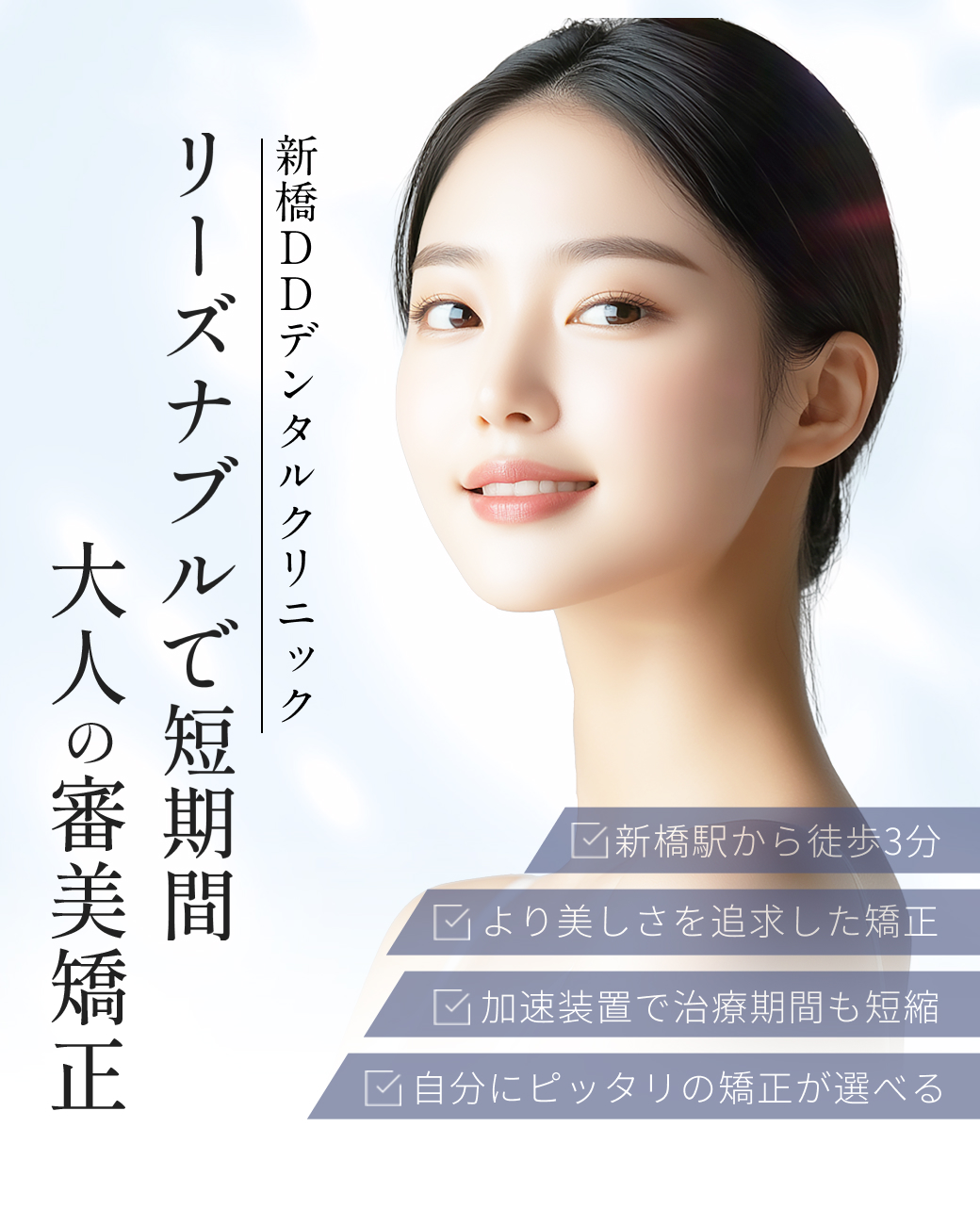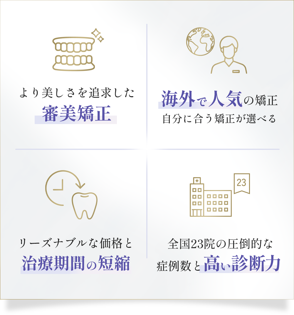 当クリニックグループでは患者様のキレイな歯並び・口元だけでなく、横顔全体の美しいバランスまで考慮した審美矯正も提供しています。